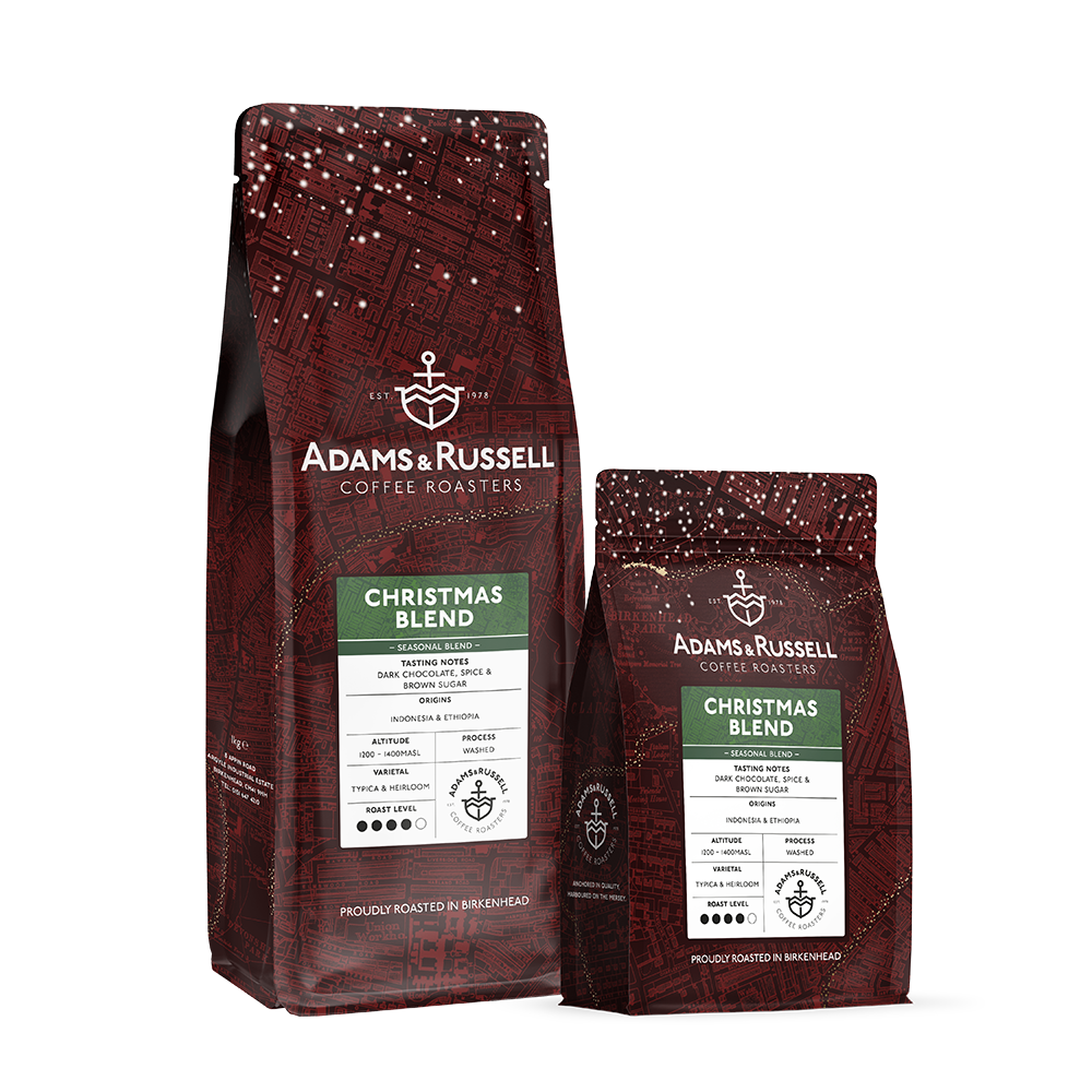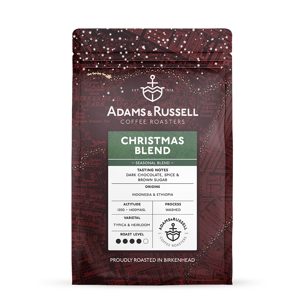 Introducing Adams + Russell’s Christmas Blend. This seasonal gem combines the high-roasted richness of Java with floral and fruity Ethiopian beans to provide the best 100% Arabica blend we can offer each Christmas.