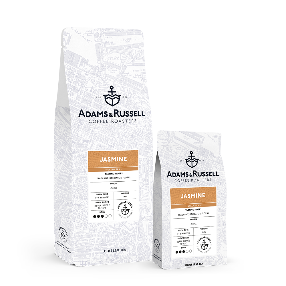 Our Jasmine Green tea is sourced from Fujian, China. A harmonious and balanced blend of green tea and fragrant jasmine flowers.